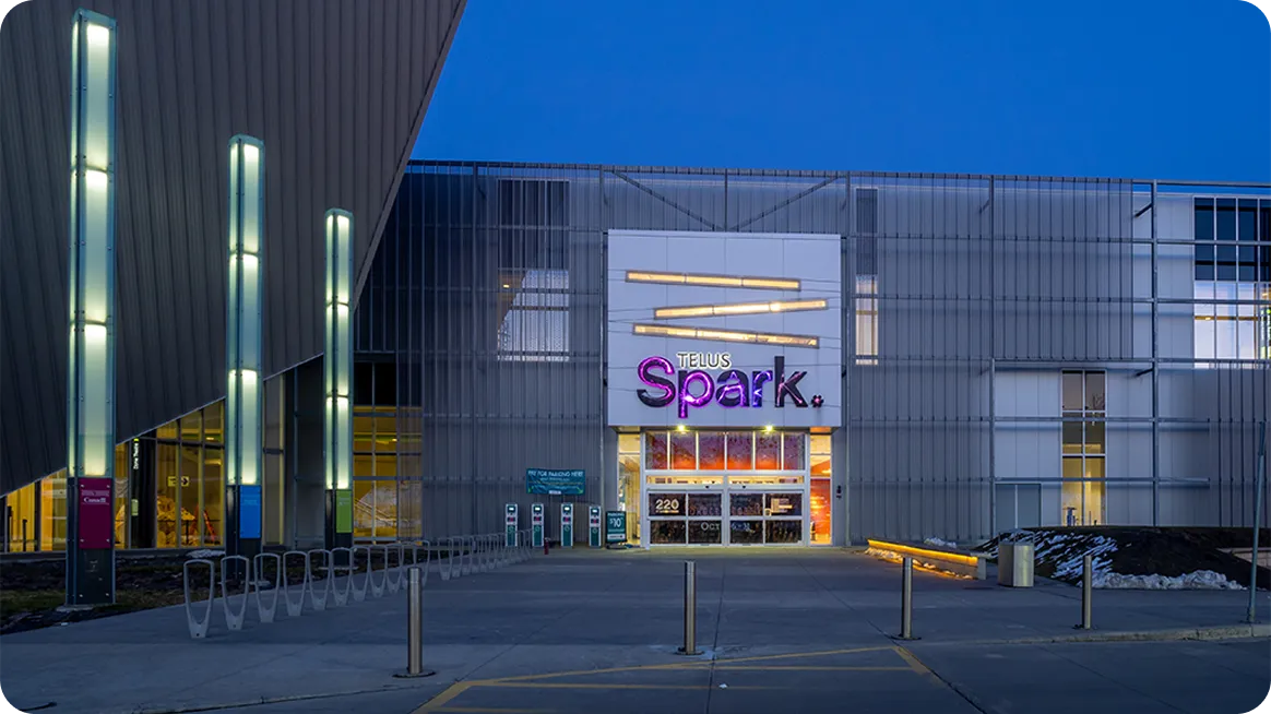 TELUS Spark Science Centre is a science museum with interactive exhibits, multimedia presentations and educational demonstrations in Calgary, Alberta, Canada. There are more than 430,000 visitors annually, including over 82,000 students. The Infinity Dome is a state of the art immersive dome theatre, with cutting edge visual resolution and color and stunning surround sound.