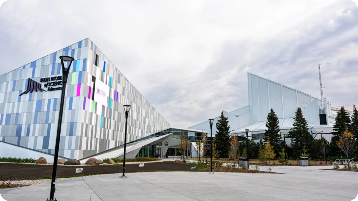 Telus World of Science Edmonton (TWOSE) is a broad-based science centre in Edmonton, Alberta, Canada, operated by the (non-profit) Edmonton Space & Science Foundation. The science centre houses 144,430 sq. ft. of public space and is the largest science centre in Western Canada, and includes the state of the art Zeidler Dome Theatre, featuring one of the best projection systems in North America, 17.2 surround sound and HDR color. The theatre also boasts extreme reclining cushioned seats for a remarkable immersive experience.